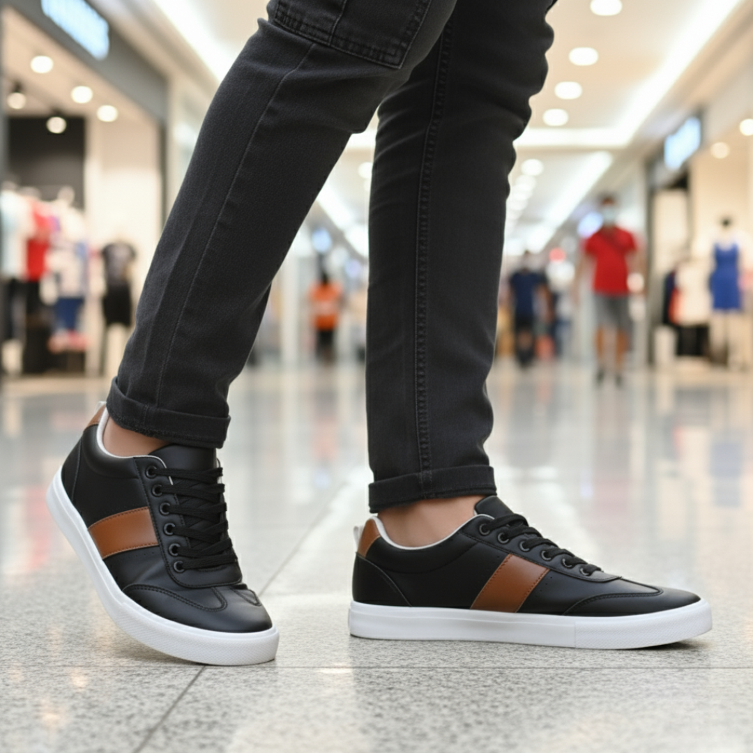 Khalid Block Shoe offer a perfect balance between minimal design and everyday elegance. Crafted with smooth synthetic leather, they feature a contrasting side stripe that adds a touch of sophistication. Lightweight, versatile, and comfortable, these shoes are made to match both casual and smart-casual outfits.